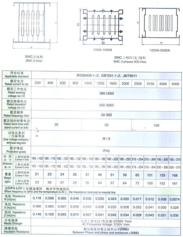 BMC-2F(KFM)系列母線槽適用于交流三相四線,三相五線制.頻率50-60H2。額定工作電流250-5000A的供配電系統(tǒng),承擔(dān)配電任務(wù),用于低壓配電屏與大、中型負(fù)載的連接。作為大電流的輸電,用于電力變壓器與低壓配電屏以及重型負(fù)載的連接。主要應(yīng)用于現(xiàn)代化的車間、汽車制造廠電機(jī)制造業(yè)的電焊線,工業(yè)用電爐廠房和高層建筑等。